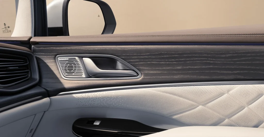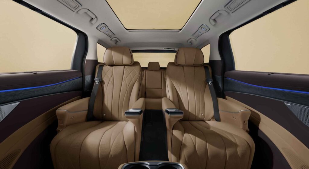 Perpaduan warna mobil Denza D9, yang memadukan warna-warna elegant dengan warna natural.